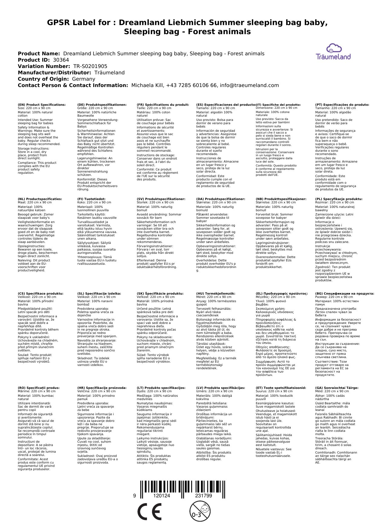 Stellen Sie eine Frage, um mehr über das Produkt zu erfahrenTräumeland Liebmich Sommerschlafsack Baby, Schlummersack - Waldtiere: Luftig, leicht und sicher