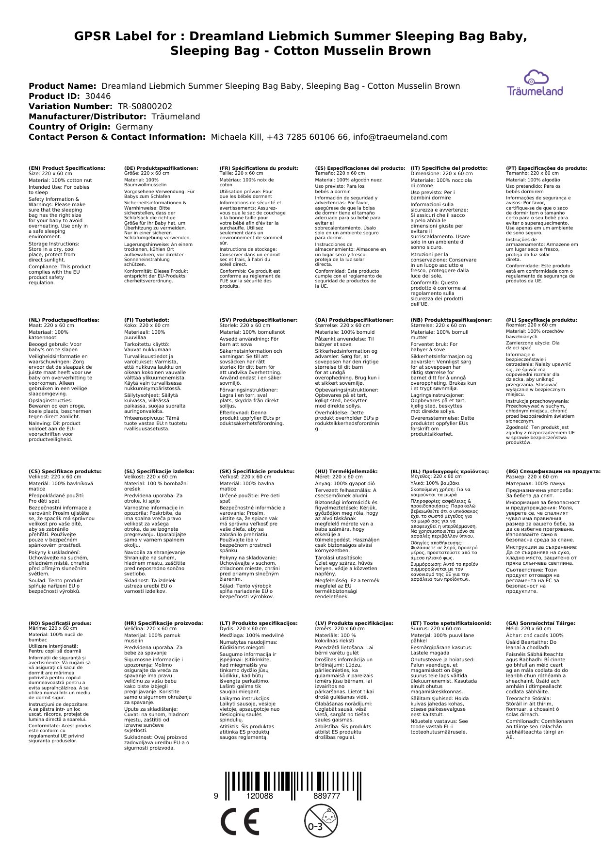 Stellen Sie eine Frage, um mehr über das Produkt zu erfahrenTräumeland Liebmich Sommerschlafsack baby, Schlummersack - Baumwollmusselin Braun