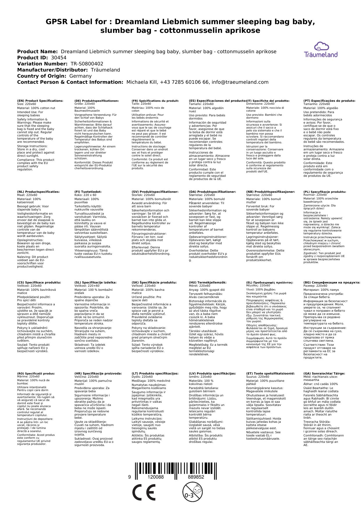 Stellen Sie eine Frage, um mehr über das Produkt zu erfahrenTräumeland Liebmich Sommerschlafsack baby, Schlummersack - Baumwollmusselin aprikose