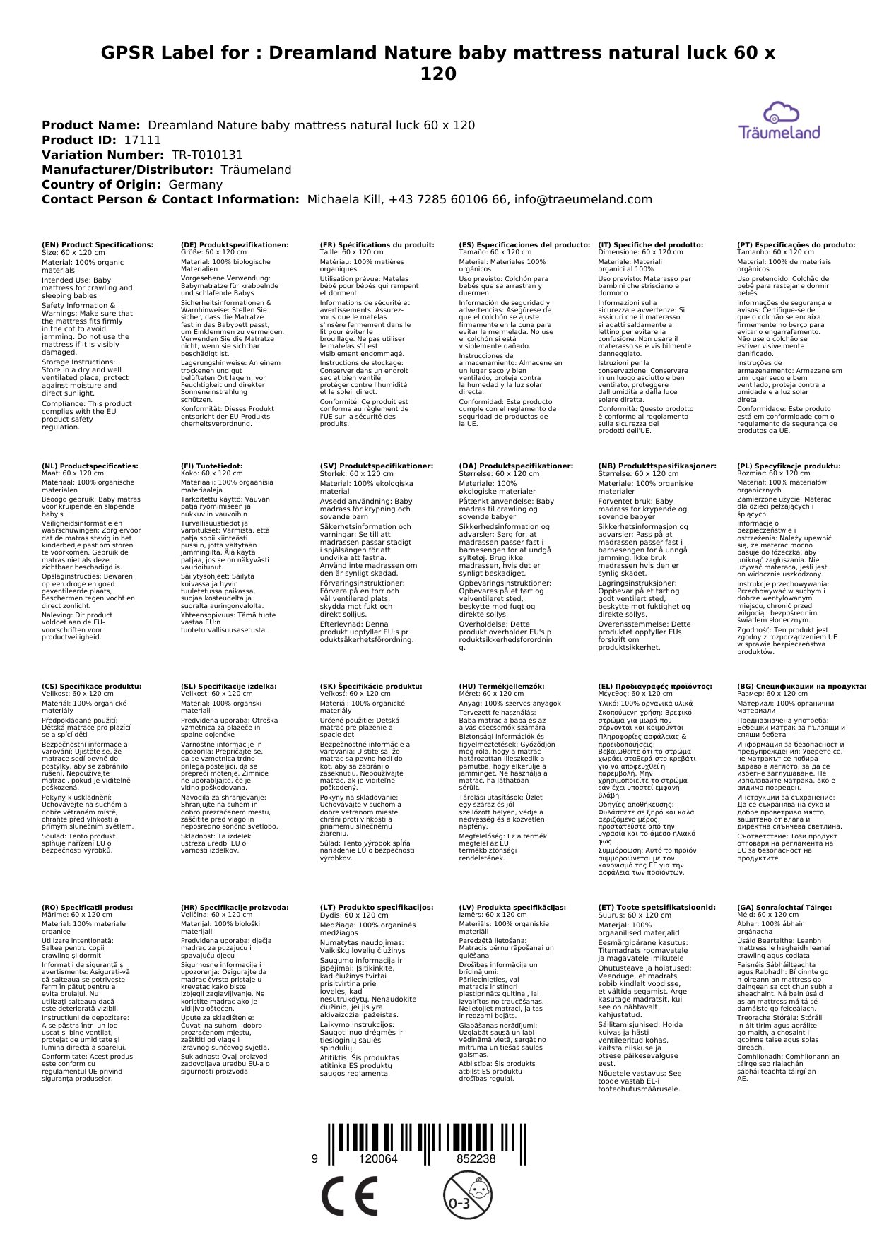 Träumeland Natur Babymatratze Naturglück 60 x 120
