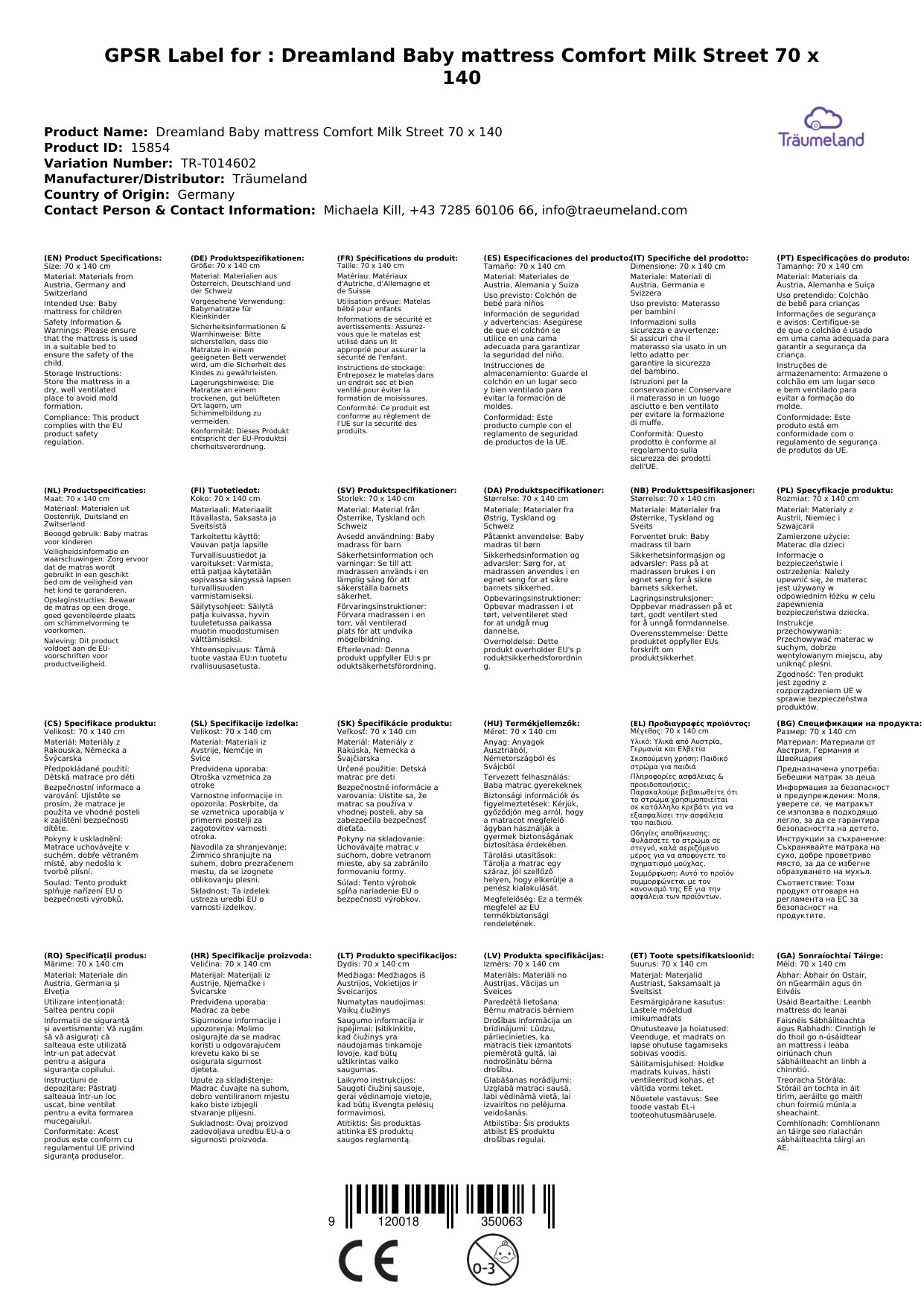 Träumeland Babymatratze Comfort Milchstrasse 70 x 140