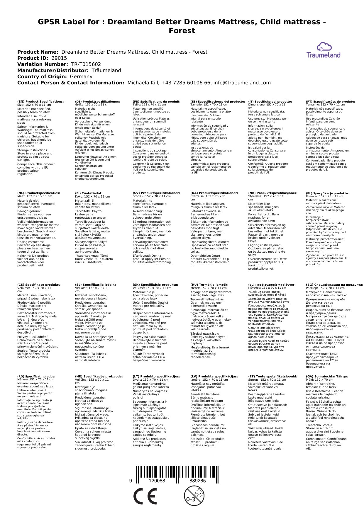 Träumeland Better Dreams Matratze, Kindermatratze - Wald, Größe: 70 x 140 x 11 cm