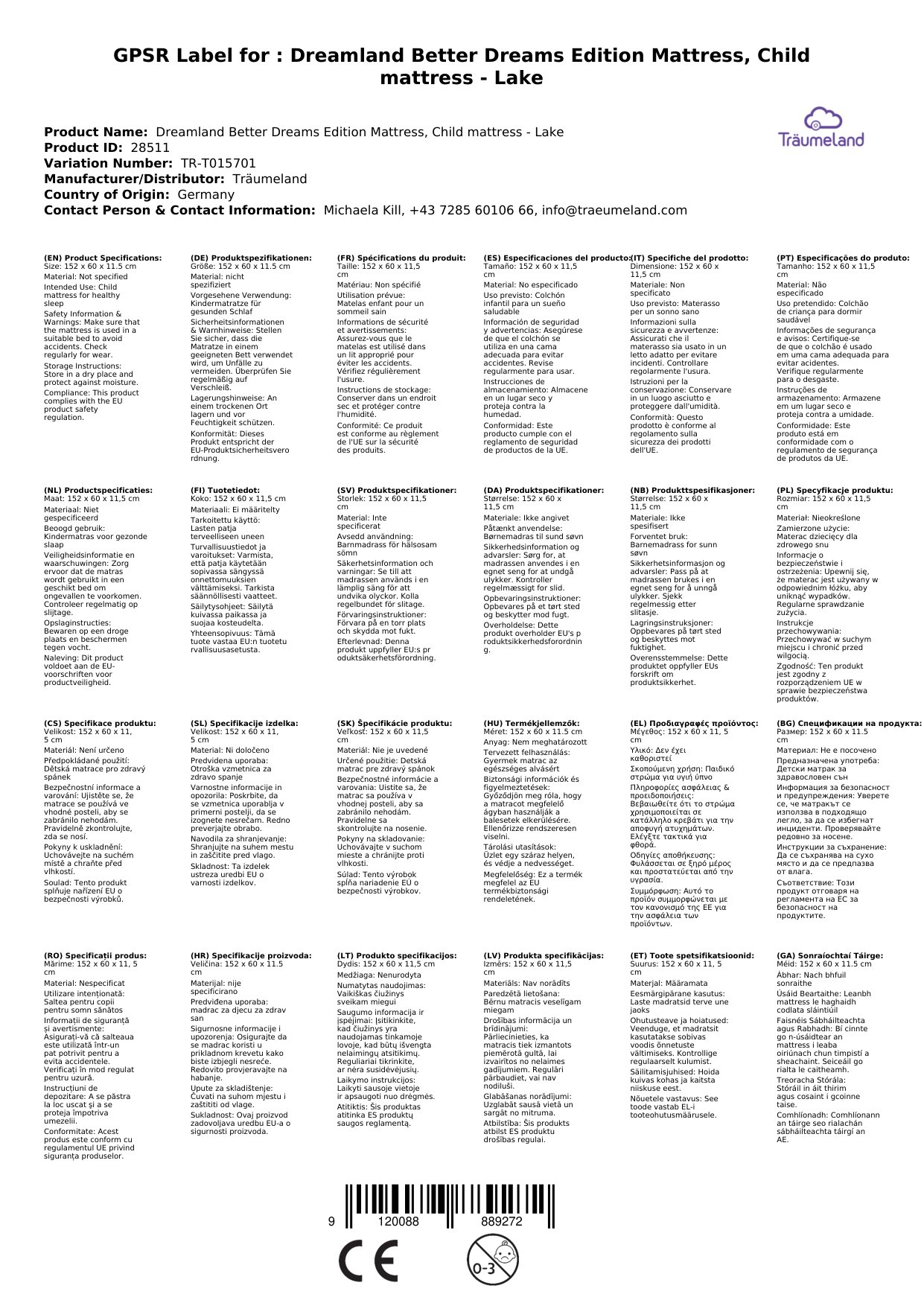 Träumeland Better Dreams Edition Matratze, Kindermatratze - See, Größe: 60 x 120 x 11.5 cm