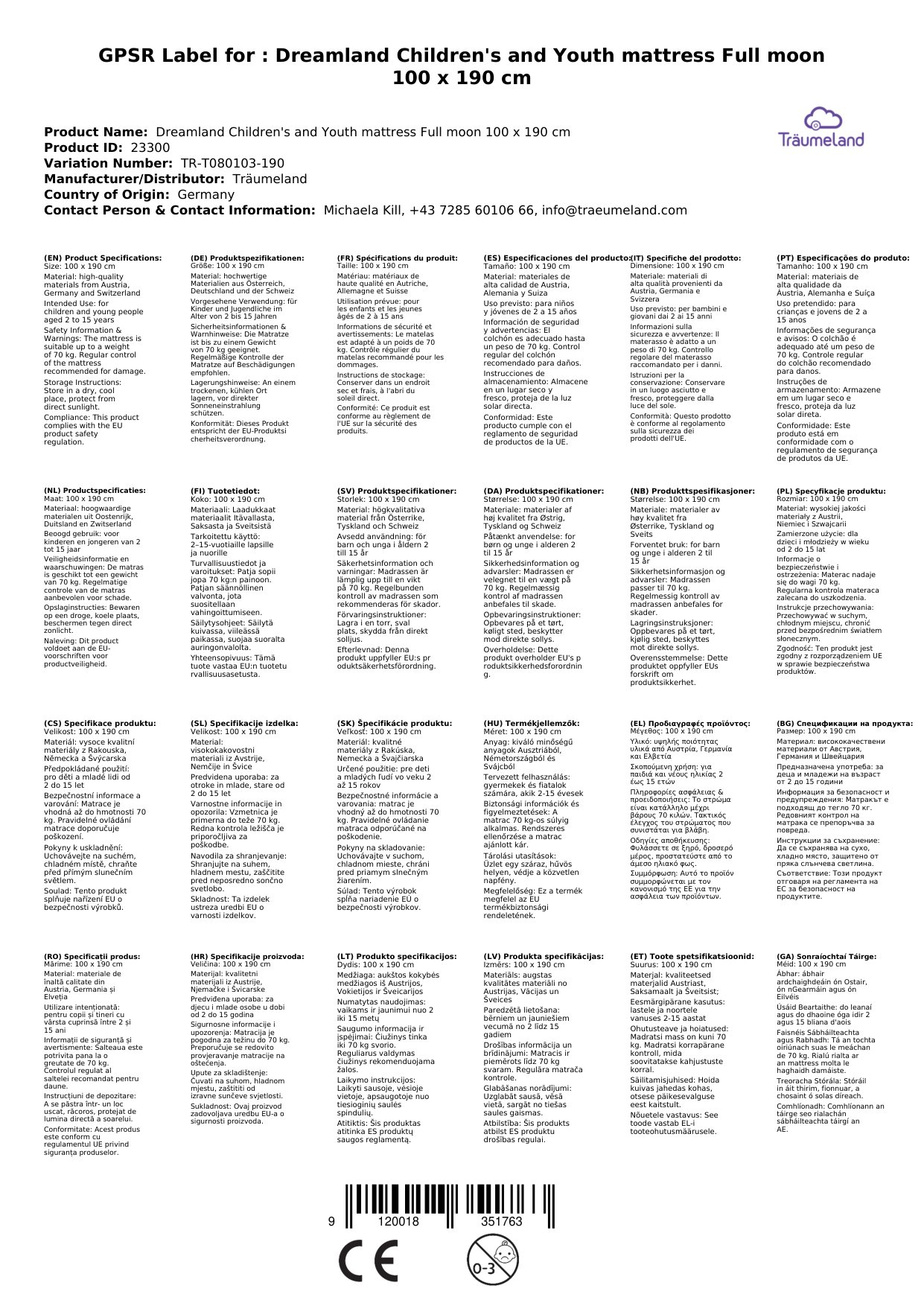 Hier zeigen wir Ihnen die Matratze im Sondermaß 100 x 190 cm - sie passt perfekt zu den Betten des Herstellers Romina. Alle gängigen Größen zeigen wir Ihnen als alternative Ausführung - darauf verweisen wir weiter unten. Alle Produkte von Träumeland auf einen Blick erhalten Sie, wenn Sie auf den Herstelllerlink klicken.
