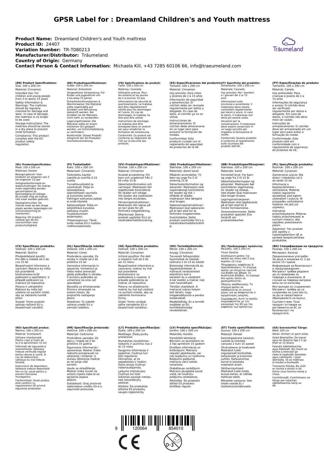 Die Kinder- und Jugendmatratze ist in verschiedenen Größen erhältlich. Die gewünschte Größe können Sie beim Bestellvorgang als Variante auswählen. Alle Produkte von Träumeland auf einen Blick erhalten Sie, wenn Sie auf den Herstelllerlink klicken.