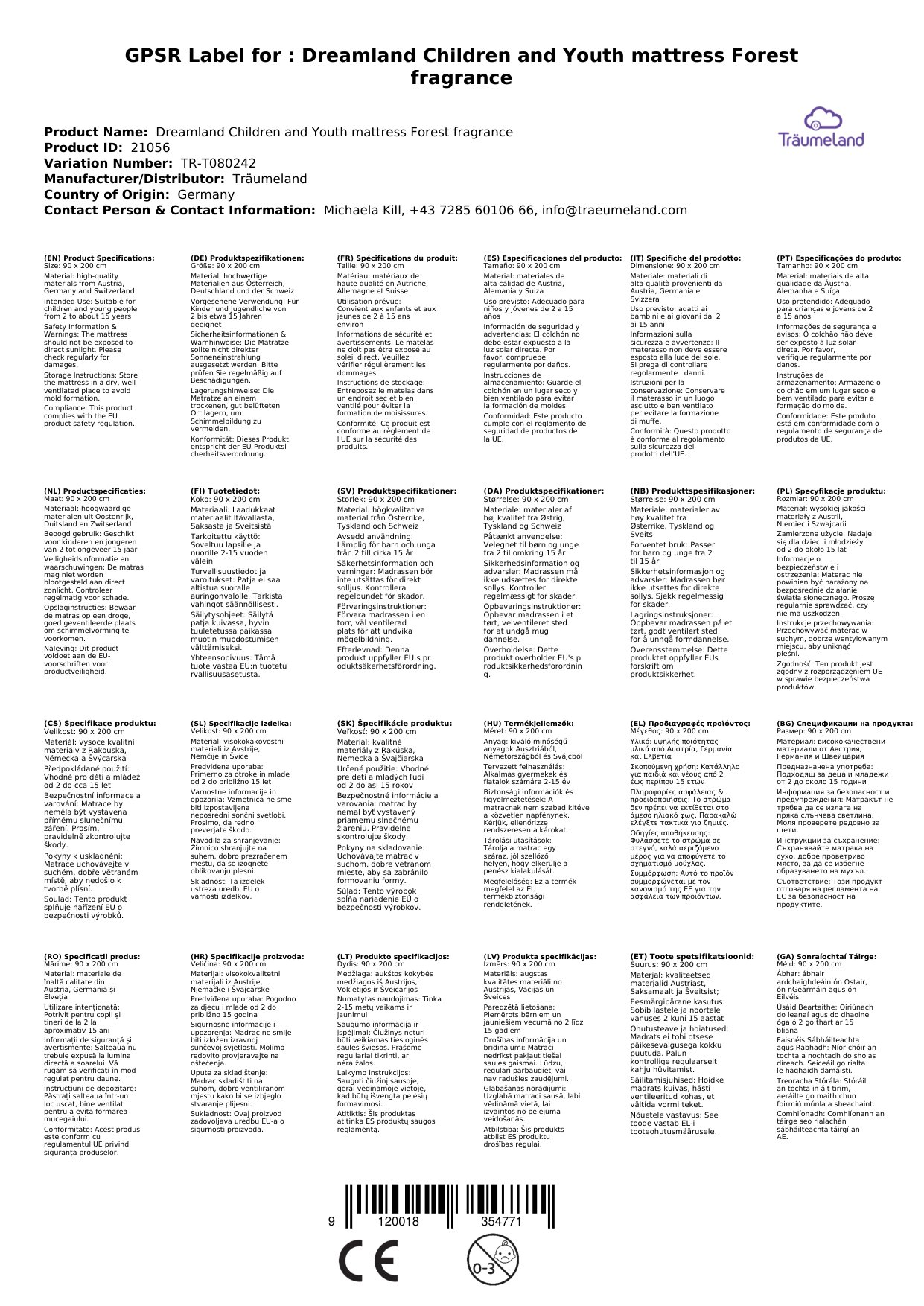 Die Kinder- und Jugendmatratze ist in verschiedenen Größen erhältlich. Die gewünschte Größe können Sie beim Bestellvorgang als Variante auswählen. Alle Produkte von Träumeland auf einen Blick erhalten Sie, wenn Sie auf den Herstelllerlink klicken.