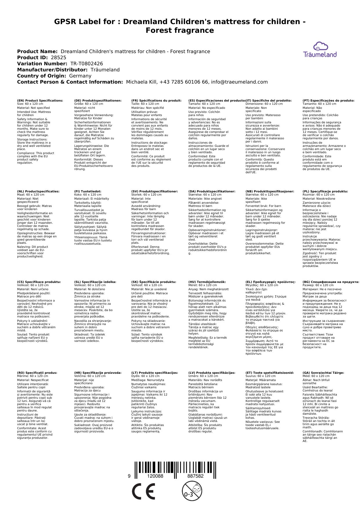 Träumeland Kindermatratze, Matratze für Kinder - Waldduft, Größe: 80 x 160 x 15 cm