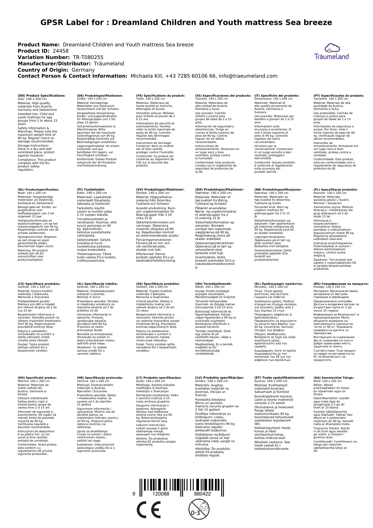 Die Kinder- und Jugendmatratze ist in verschiedenen Größen erhältlich. Die gewünschte Größe können Sie beim Bestellvorgang als Variante auswählen. Alle Produkte von Träumeland auf einen Blick erhalten Sie, wenn Sie auf den Herstelllerlink klicken.