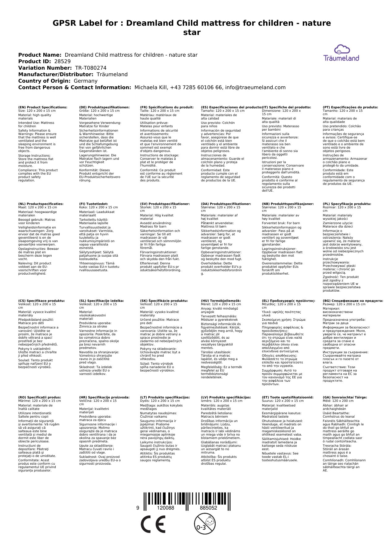 Träumeland Kindermatratze, Matratze für Kinder - Naturstern, Größe: 120 x 200 x 15 cm