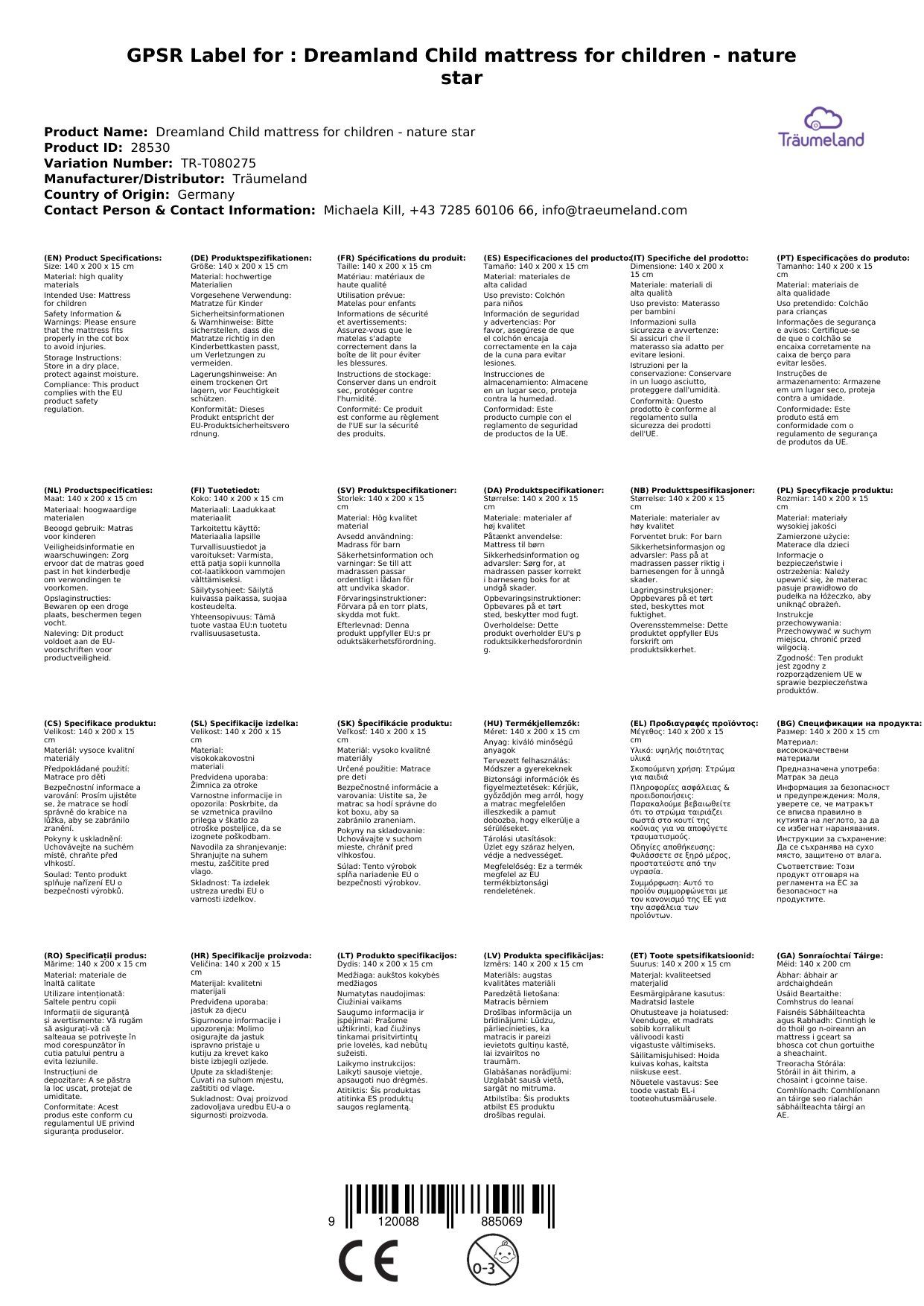 Träumeland Kindermatratze, Matratze für Kinder - Naturstern, Größe: 140 x 200 x 15 cm