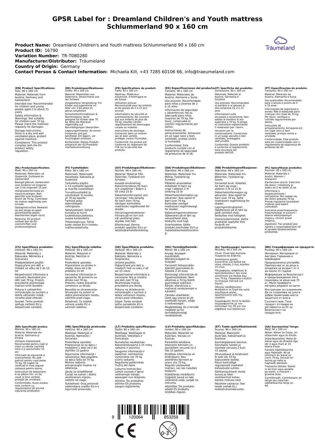 Hier zeigen wir Ihnen die Matratze im Sondermaß 90 x 160 cm - sie passt perfekt zu allen Juniorbetten im gleichen Maß. Alle Produkte von Träumeland auf einen Blick erhalten Sie, wenn Sie auf den Herstelllerlink klicken.