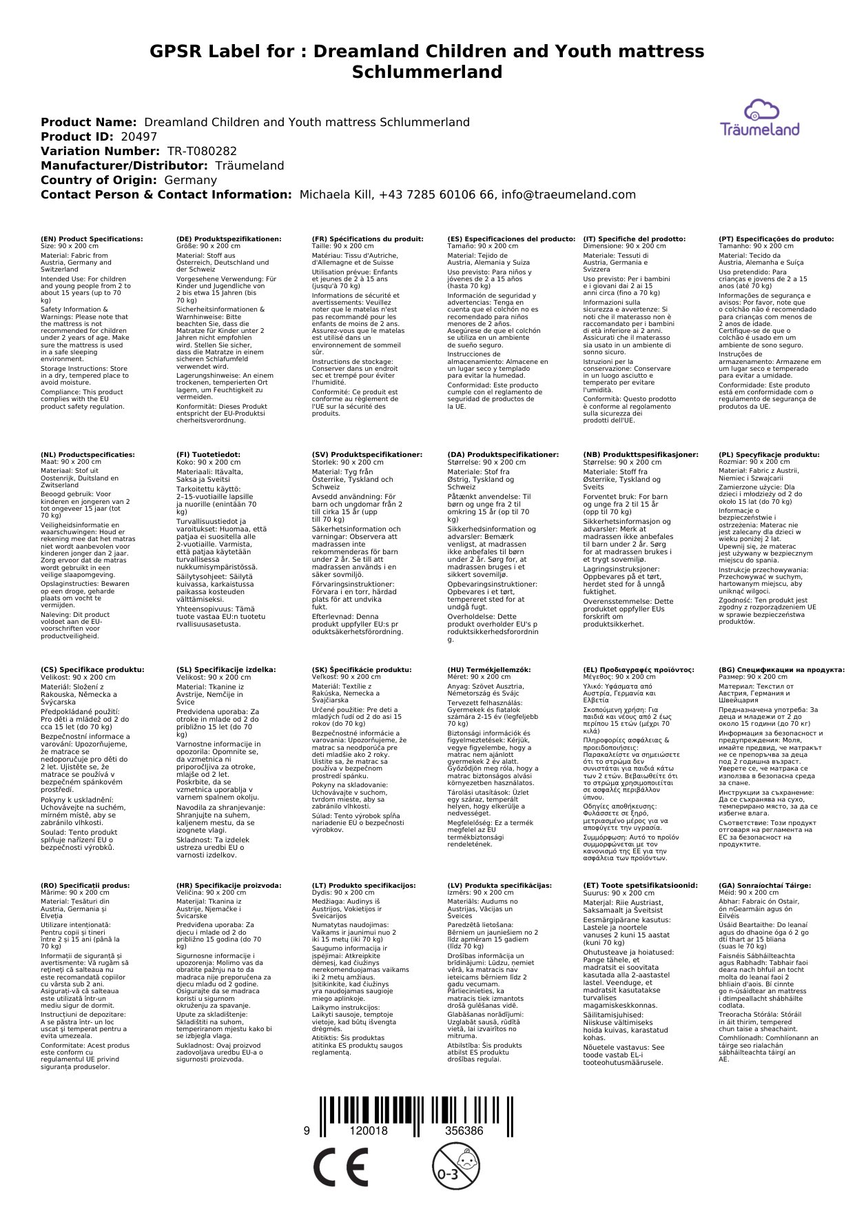 Die Kinder- und Jugendmatratze ist in verschiedenen Größen erhältlich. Die gewünschte Größe können Sie beim Bestellvorgang als Variante auswählen. Alle Produkte von Träumeland auf einen Blick erhalten Sie, wenn Sie auf den Herstelllerlink klicken.