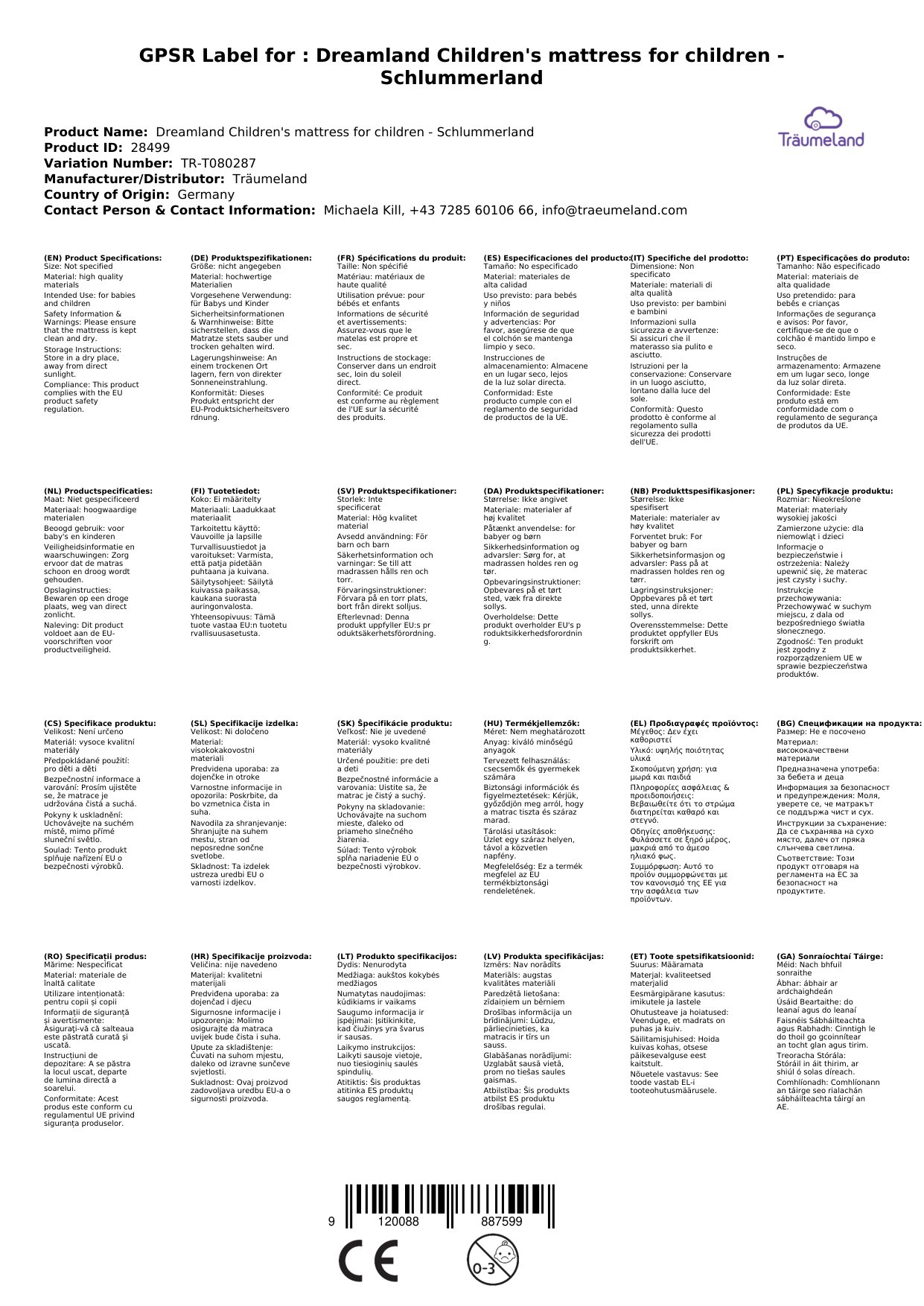 Die Kindermatratze Schlummerland von Träumeland ist eine hochwertige Matratze für Babys und Kinder, die einen erholsamen und gesunden Schlaf ermöglicht. Die Matratze besteht aus hochwertigen Materialien und bietet optimalen Komfort für kleine Schläfer.