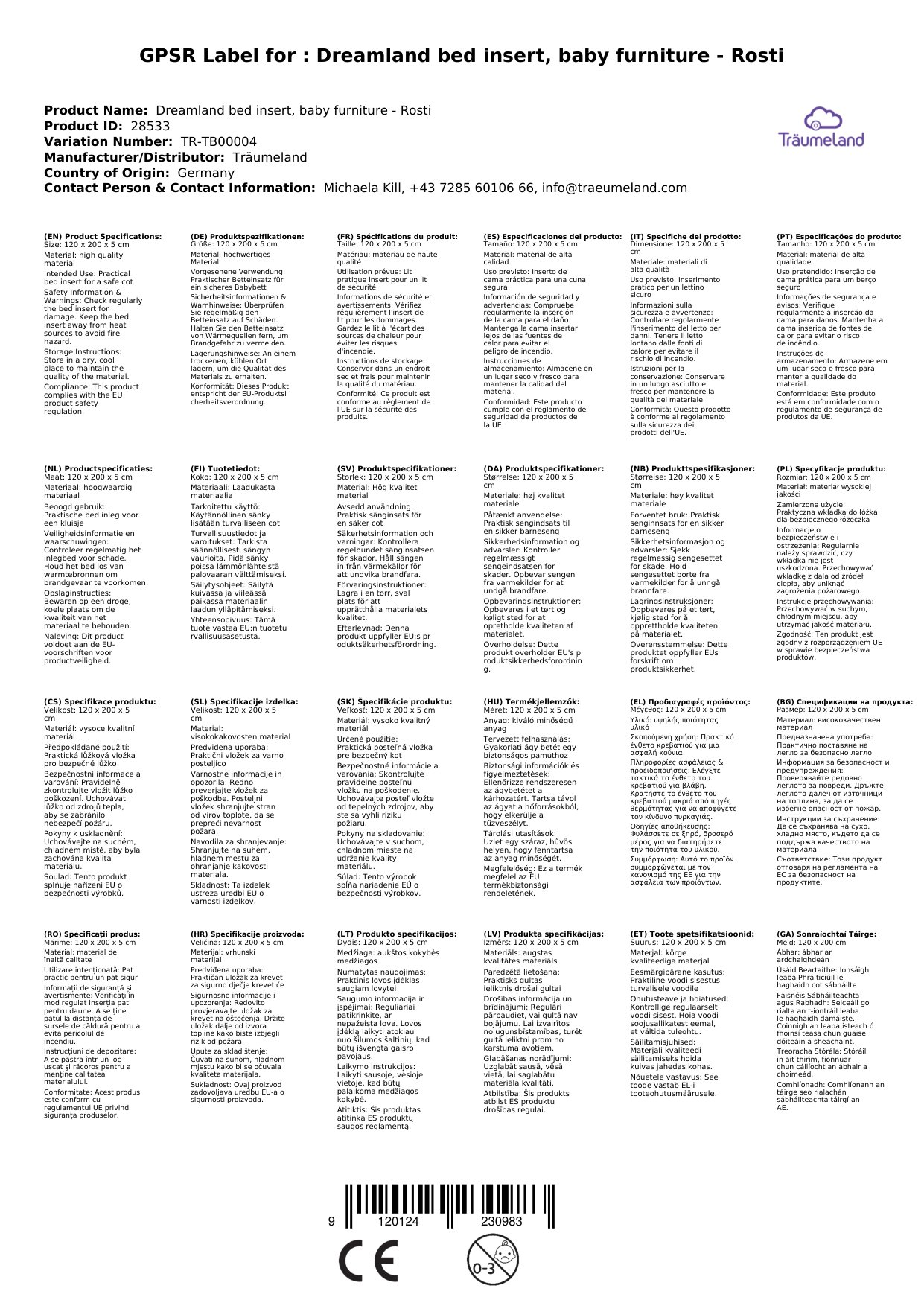 Träumeland Betteinsatz, Babymöbel - Rosti, Größe: 120 x 200 x 5 cm
