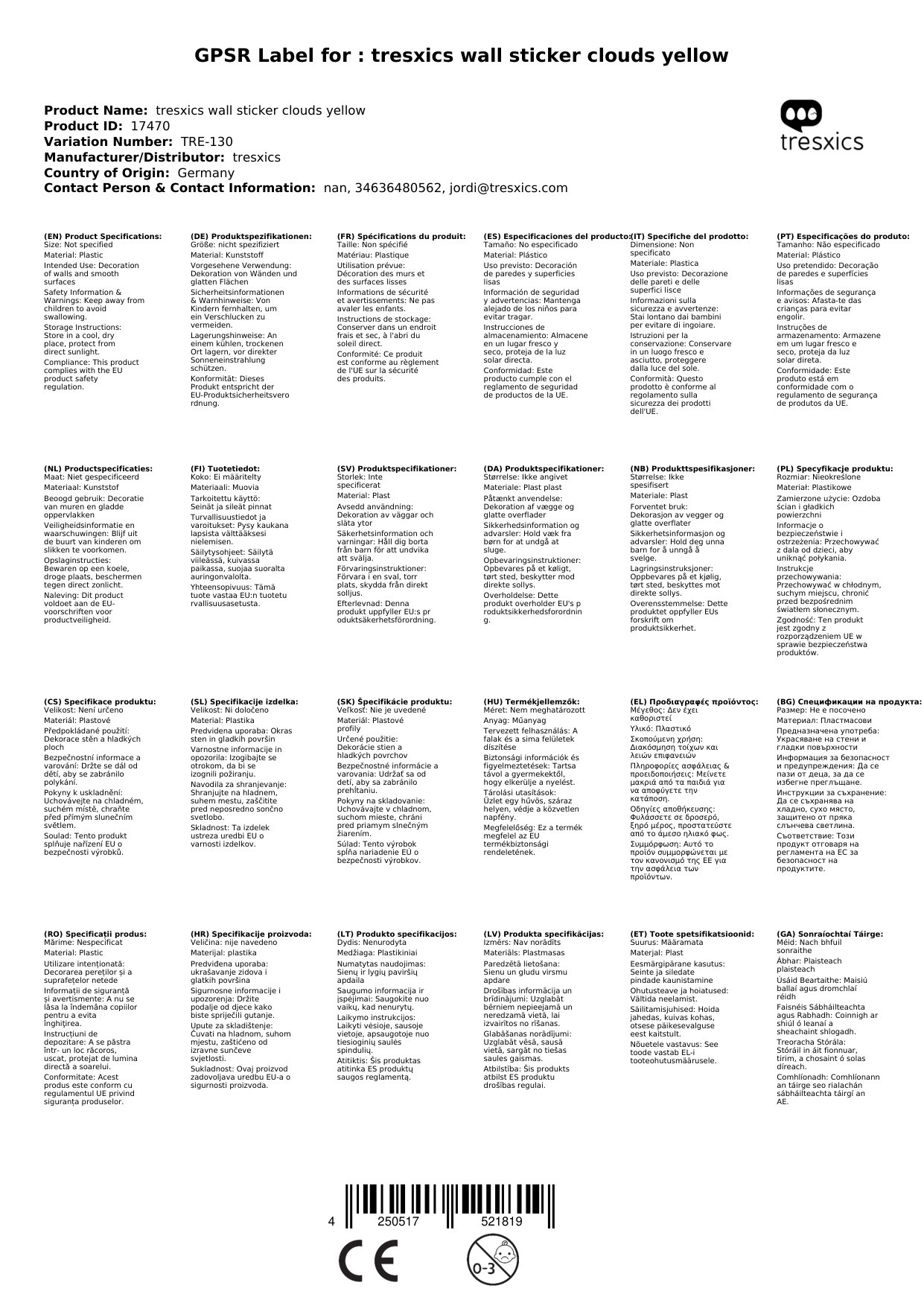 Die Wandsticker bestellen wir zeitnah in Spanien, falls sie nicht bei uns lagernd sein sollten. Die Lieferzeit sehen Sie weiter oben neben den Fotos.