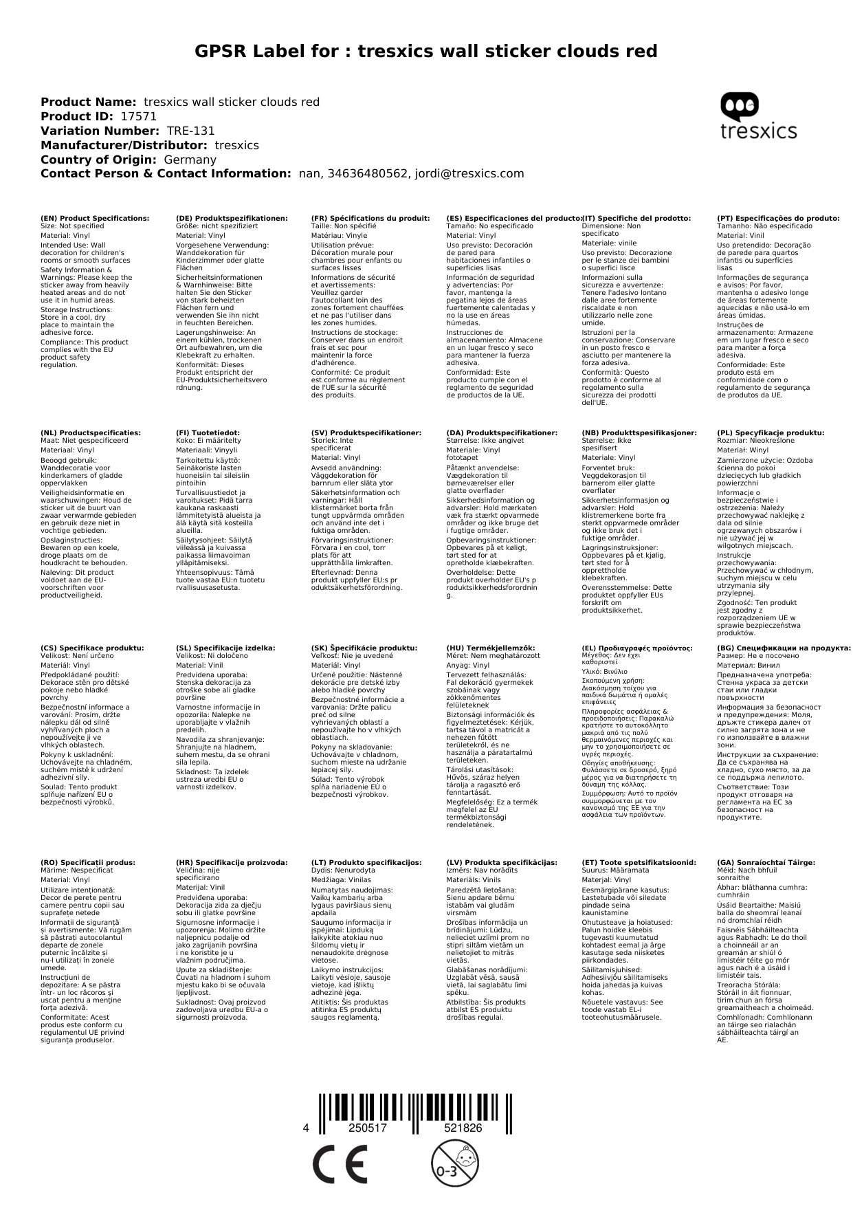 Die Wandsticker bestellen wir zeitnah in Spanien, falls sie nicht bei uns lagernd sein sollten. Die Lieferzeit sehen Sie weiter oben neben den Fotos.