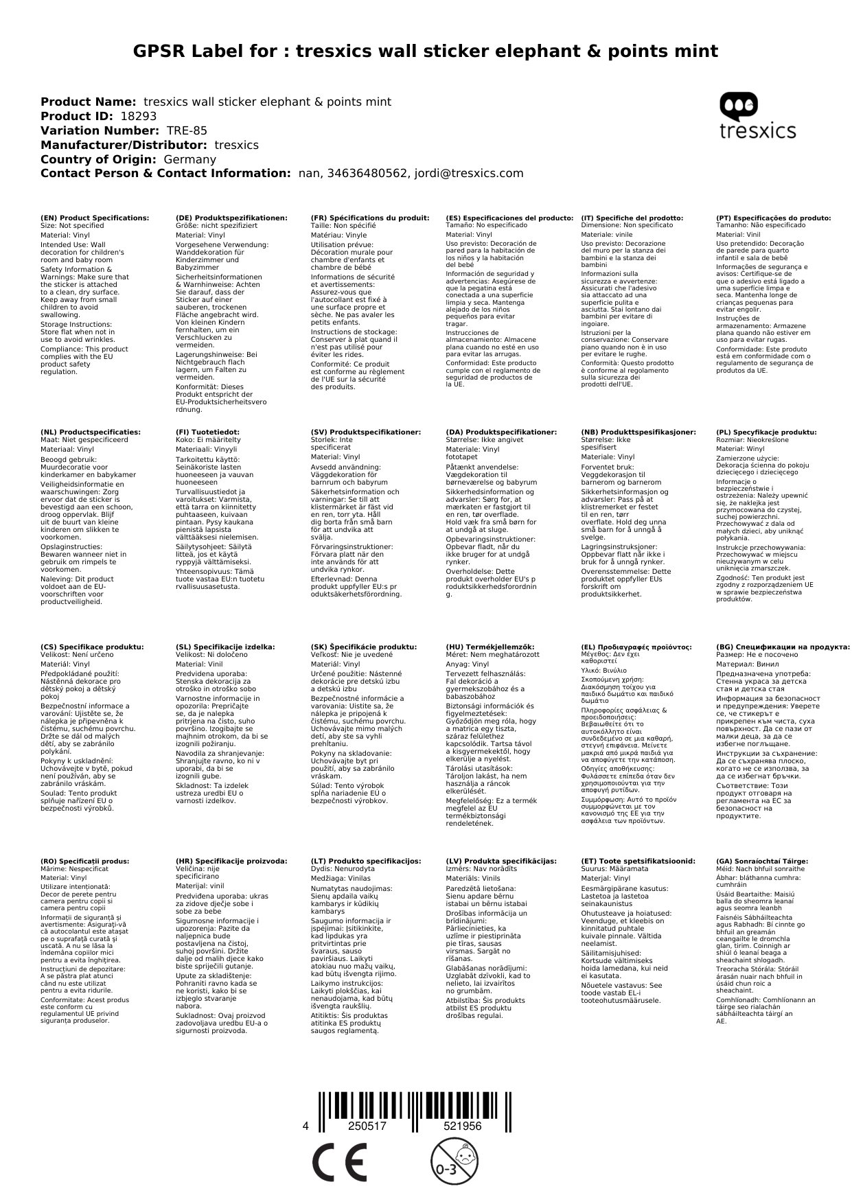 Den süssen Wandsticker bestellen wir zeitnah in Spanien, falls er nicht bei uns lagernd sein sollte. Die Lieferzeit sehen Sie weiter oben neben den Fotos.