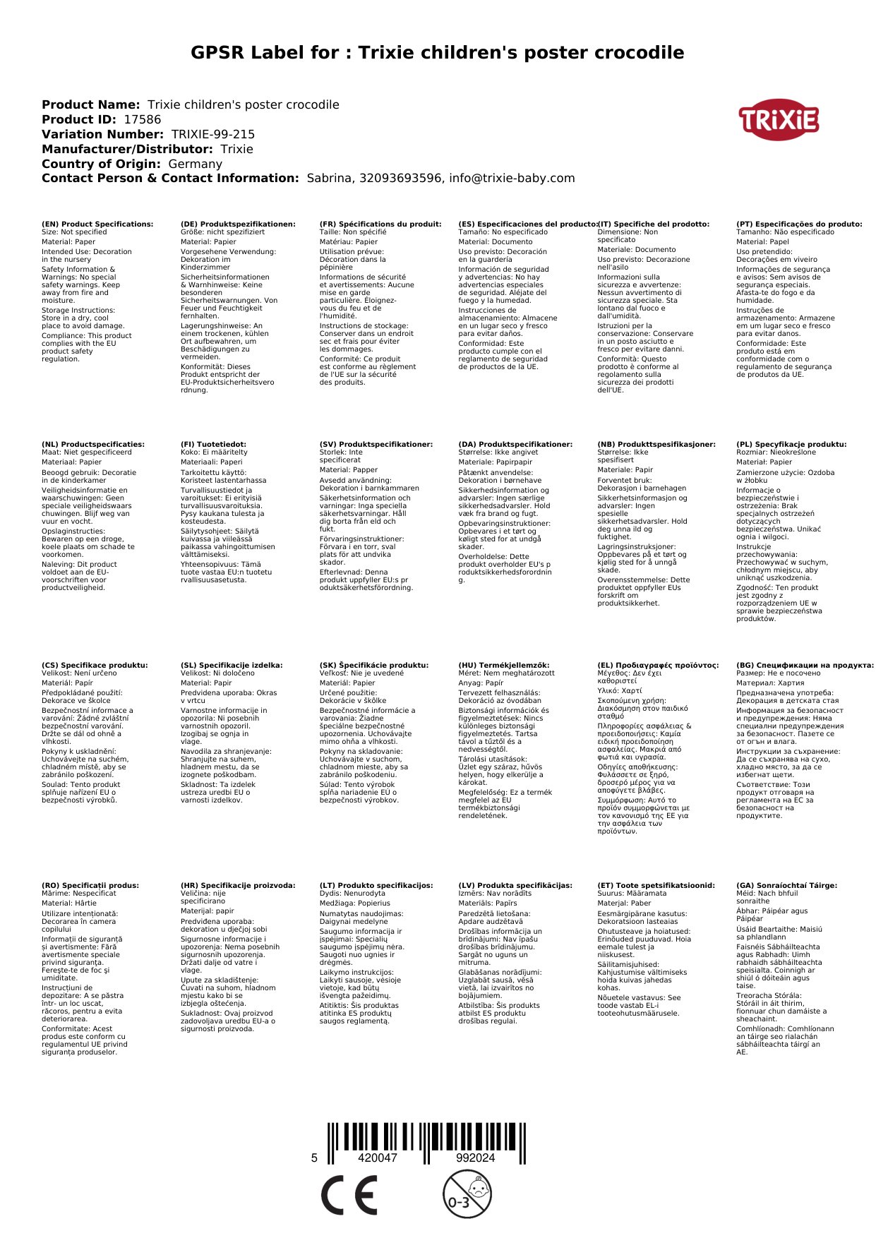 Trixie Kinderposter Krokodil