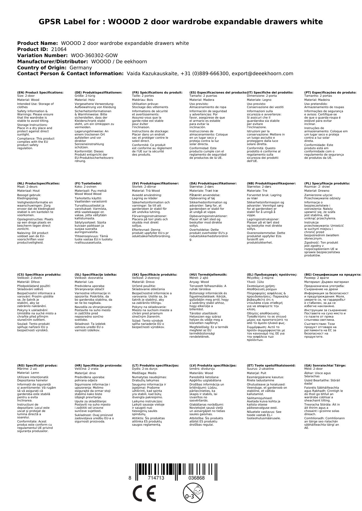 Stellen Sie eine Frage, um mehr über das Produkt zu erfahrenHier zeigen wir Ihnen einen schönen Kleiderschrank von Woood in weiß.