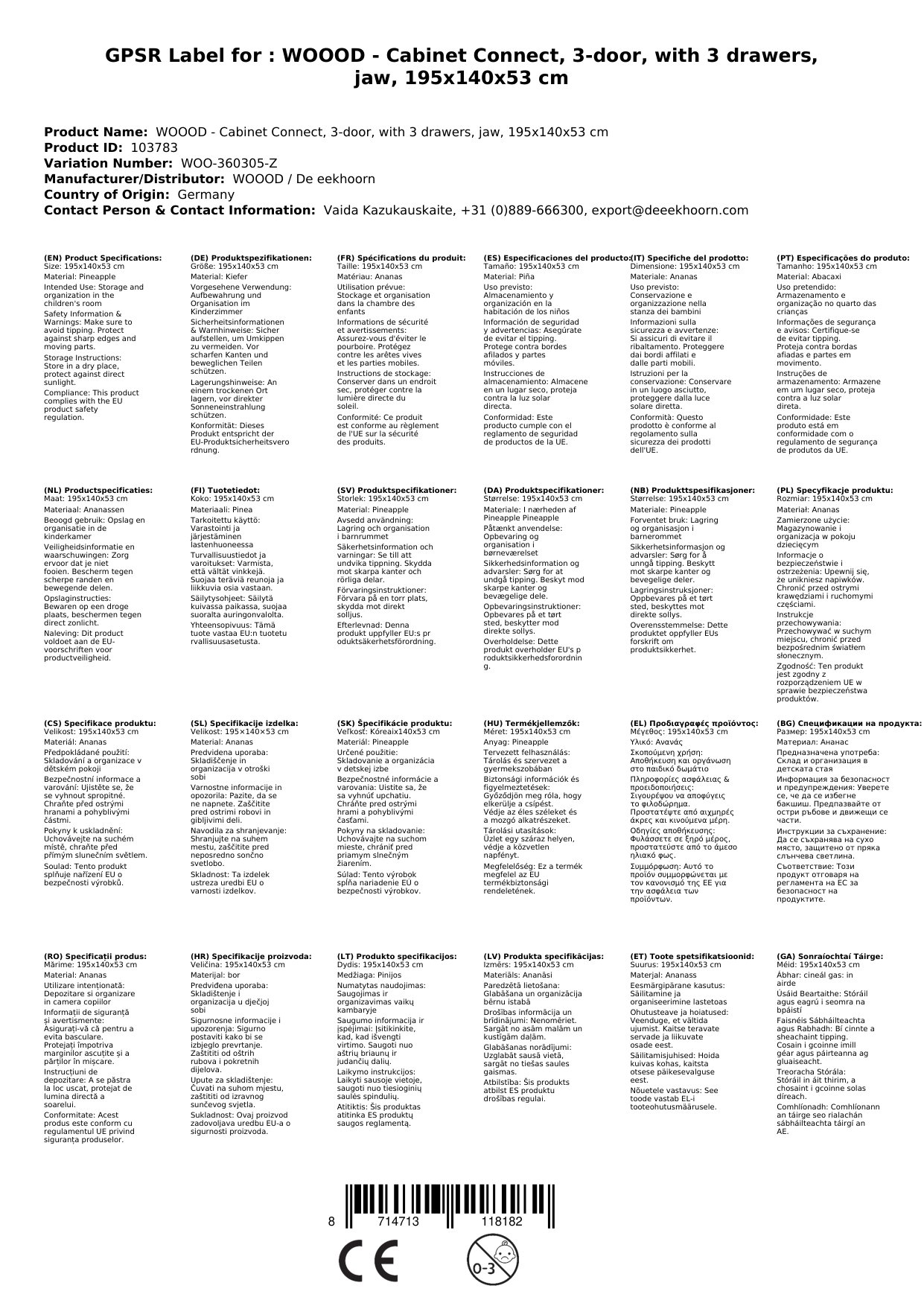 Stellen Sie eine Frage, um mehr über das Produkt zu erfahrenWOOOD - Schrank, Holzschrank, Kleiderschrank Connect, 3-türig, mit 3 Schubladen, Kiefer, 195x140x53 cm