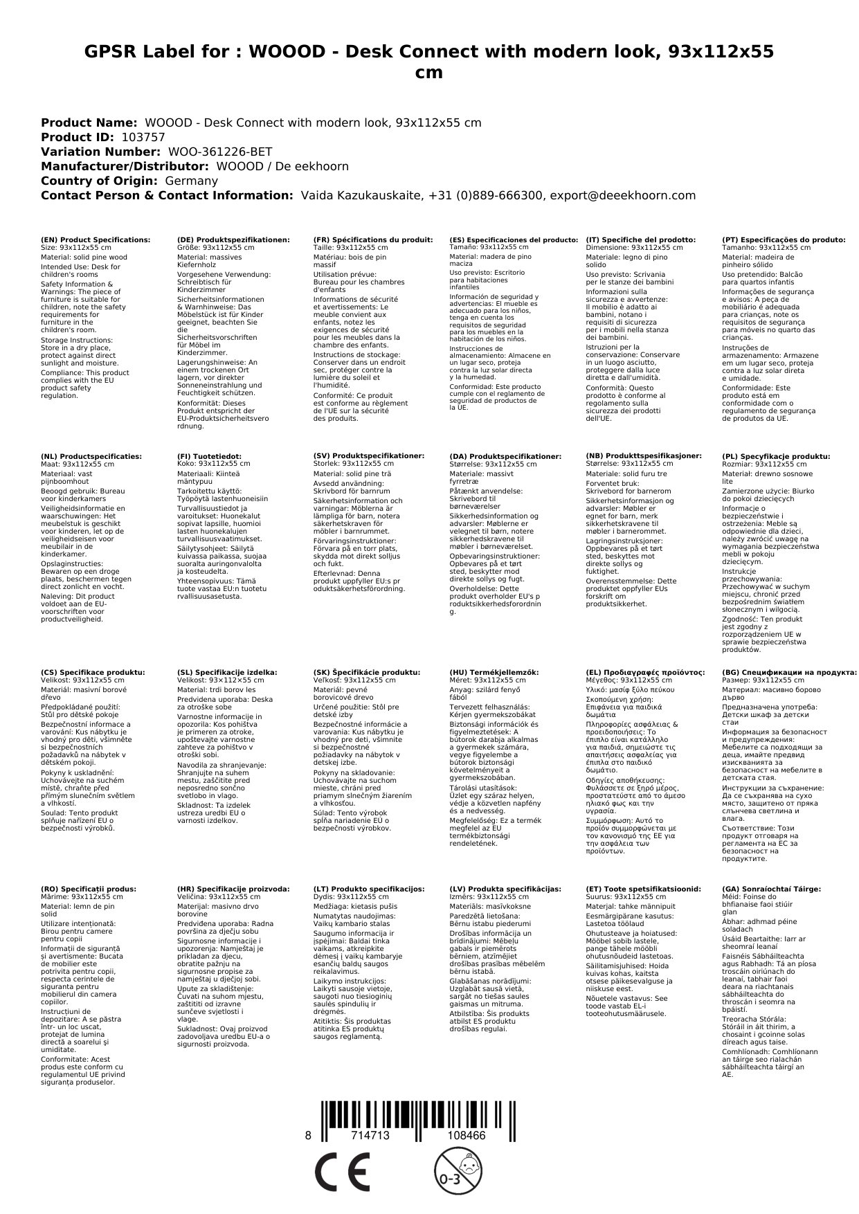 Der WOOOD-Schreibtisch ist nicht nur ein funktionales Möbelstück, sondern auch ein echtes Statement für jedes moderne Kinderzimmer. Mit seiner betongrauen Farbe und dem massiven Kiefernholz strahlt er zeitlose Eleganz aus.