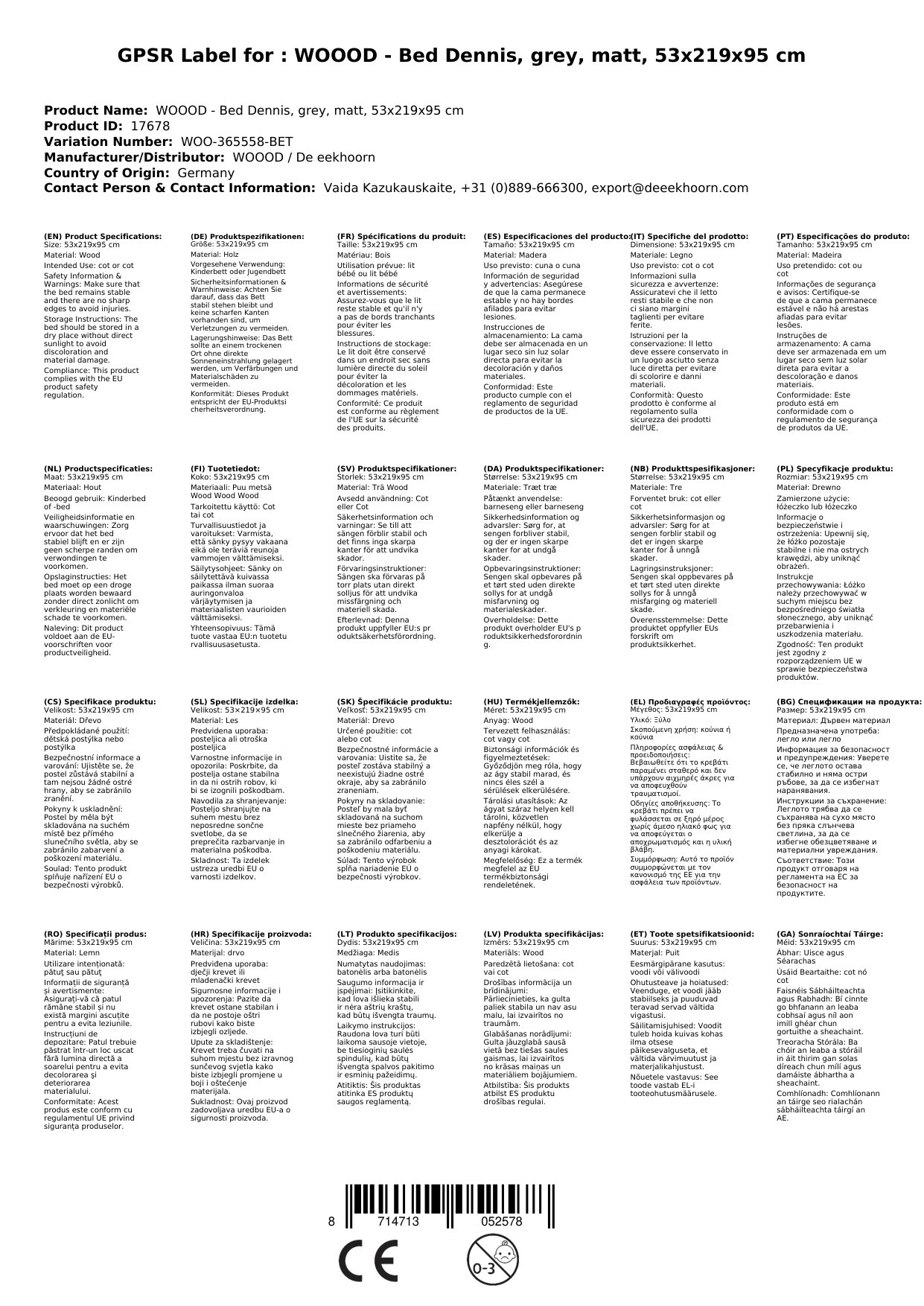 Stellen Sie eine Frage, um mehr über das Produkt zu erfahrenWOOOD - Bett, Kinderbett, Jugendbetten Dennis, betongrau, matt, 53x219x95 cm